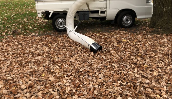 「毎朝、ブロアーで場内掃除」 いよいよ落ち葉の落ちっぷりが本格化。 銀杏は集めると、素敵なおちばプールに...