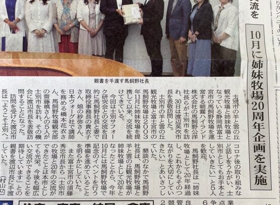 「新聞で」 先週北海道士別市の「羊と雲の丘観光牧場さん」を表敬訪問した社長が新聞で大々的に報じられまして。(北...
