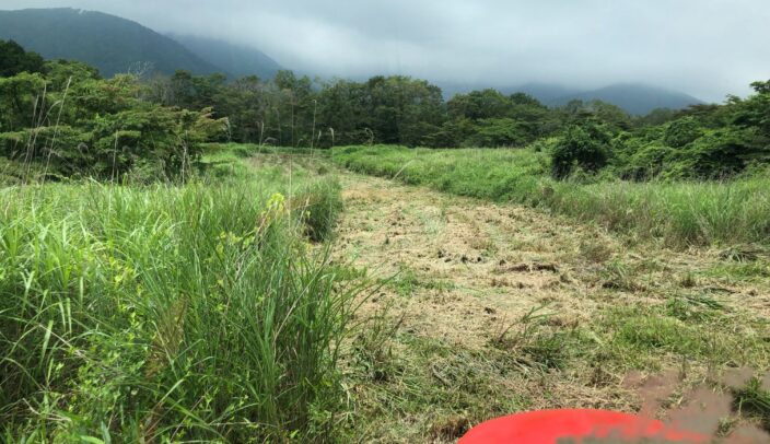 2.5mほどの草むらを、トラクターでバンバン刈りながら進む動画(1回目は刈り込みは、完了しました)