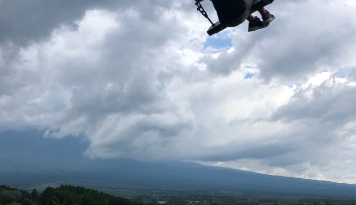 曇天でも、大空に吹っ飛ぶ1枚を!(ハイジのブランコ)