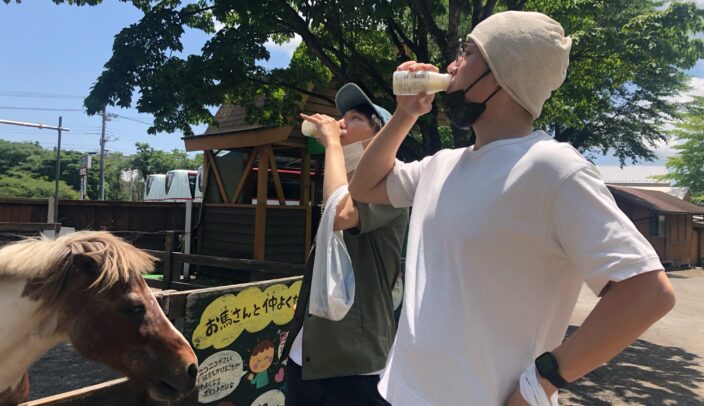 「ポーズ大切」 トキオ君の前で牛乳を飲むお兄さんズ。 乳質改善共励会でも「超高品質で...