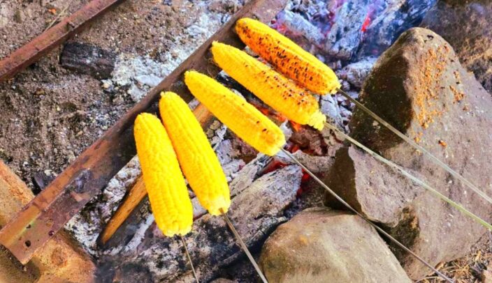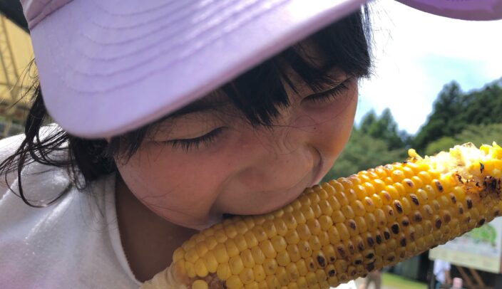 トウモロコシ食べるのを「焼きトウモロコシ作り体験」にパワーアップする。