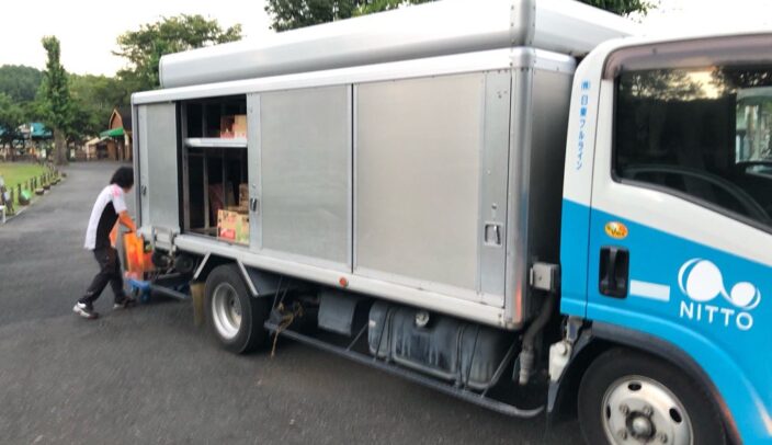 「ホースがホースでジャー」 イーグルさん達が、つなぎ場でホースでジャージャー洗ってもらって...