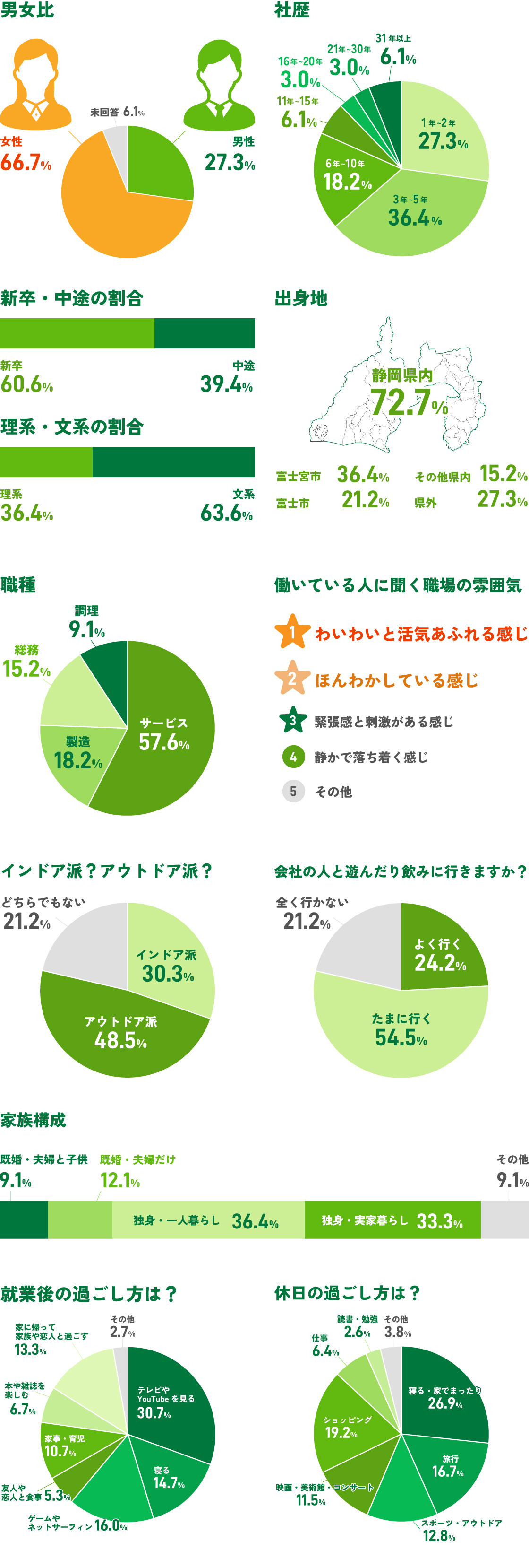 食に関わる仕事で活躍したい方、人とコミュニケーションをとるのが好きな方、将来を考え、長期的に働きたい方を求めます。