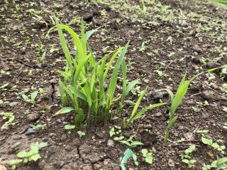 黄色い部分はタネなので、取り残したトウモロコシがすきこまれて、芽を出してこんな状態に。