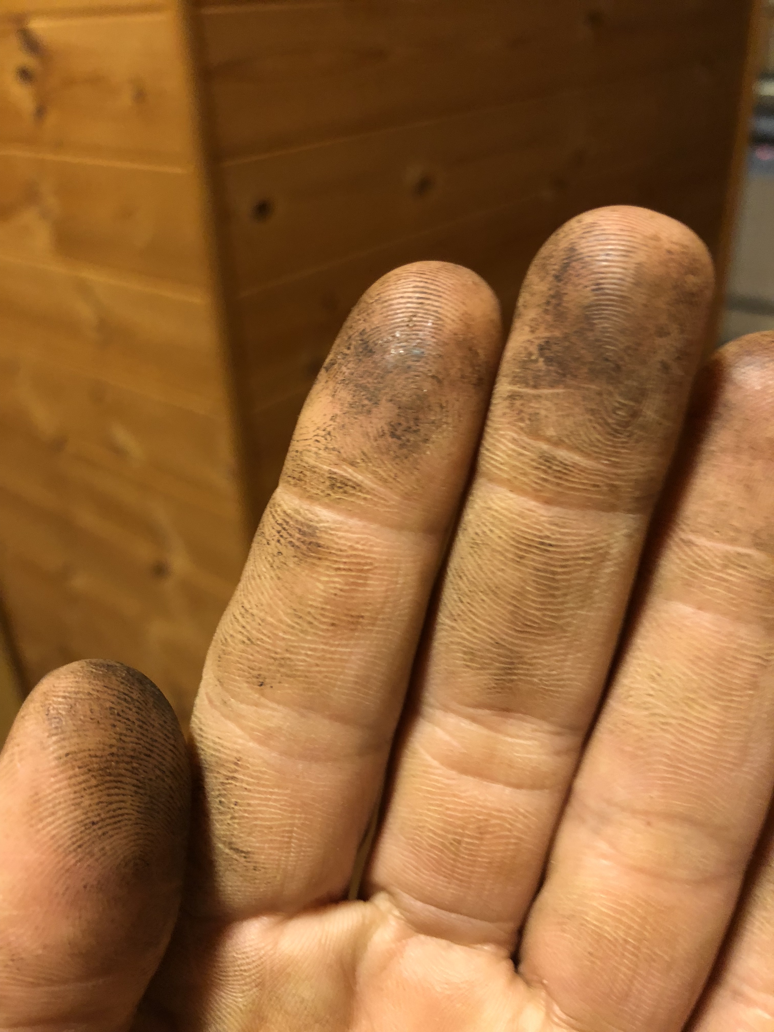 トマトの剪定をしていたら、指がアクで真っ黒。