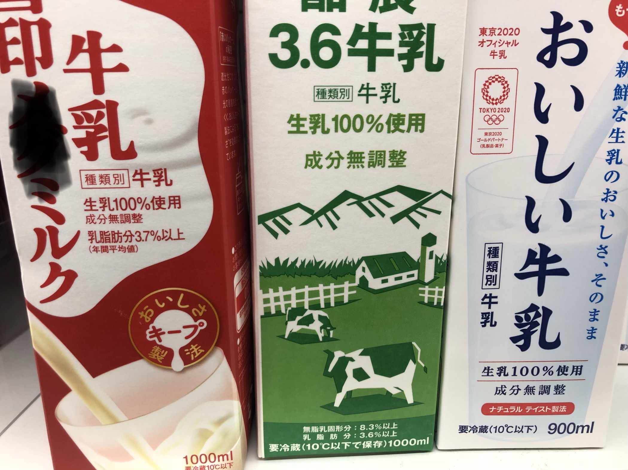 ※「3.6牛乳」みたいな数字は、乳脂肪分3.6%を表しております。