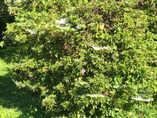 ※植え込みによくある、「棚状のクモの巣」をつくっているのは「タナグモ」といいます。ダンゴムシとかの虫をポイってすると、奥の部屋からサッと出てくるのが観察できます。