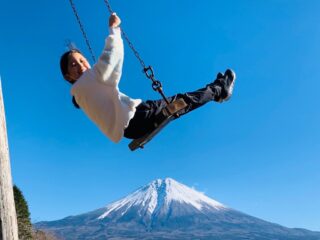 ※立ったまま撮ると、人と富士山が重なってしまいますから!