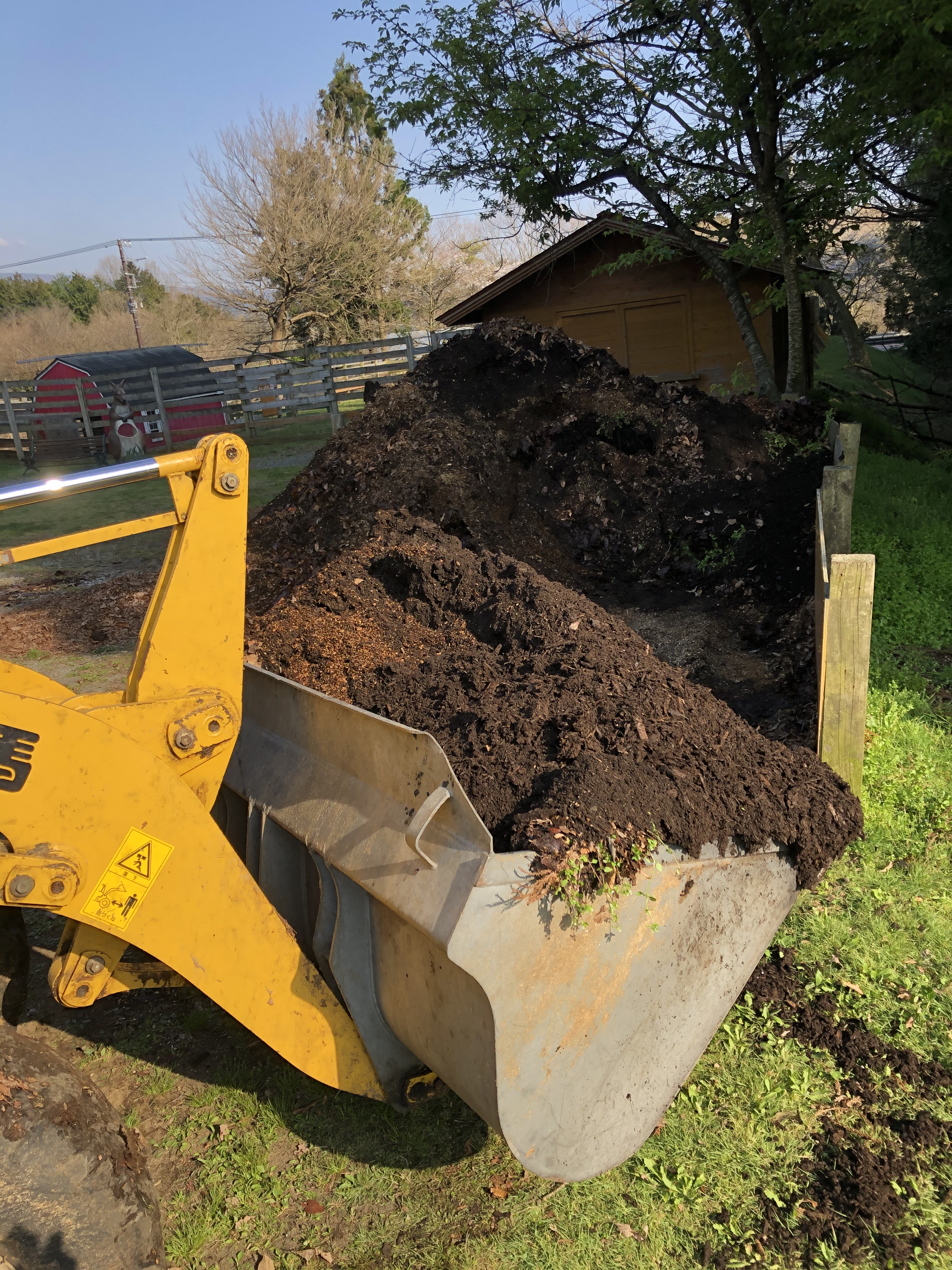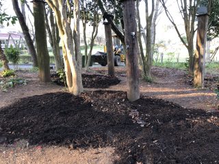 ウッドチップを重機でほじくり返す。