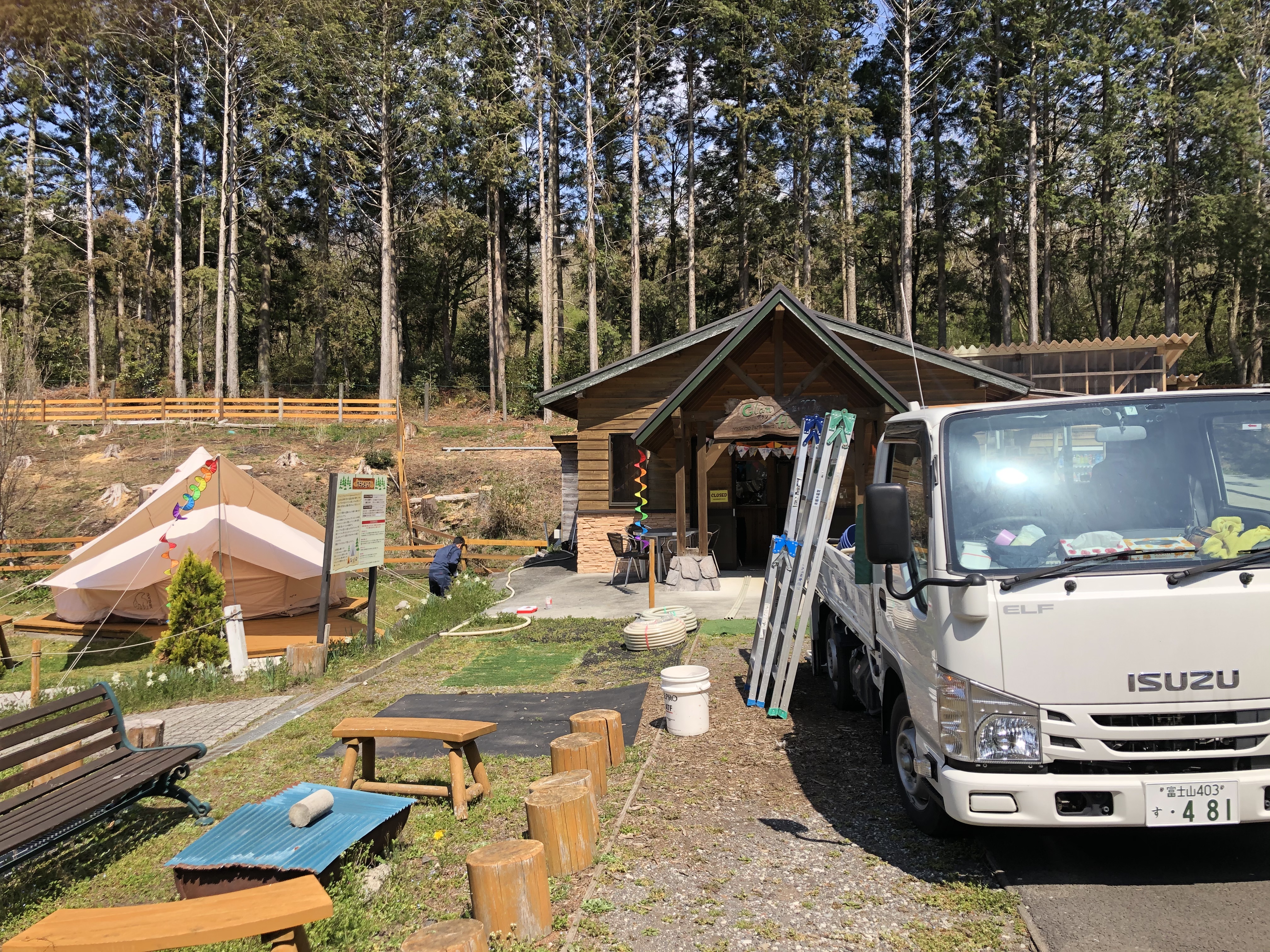 森の隠れ家、配電作業を電気屋さんが。