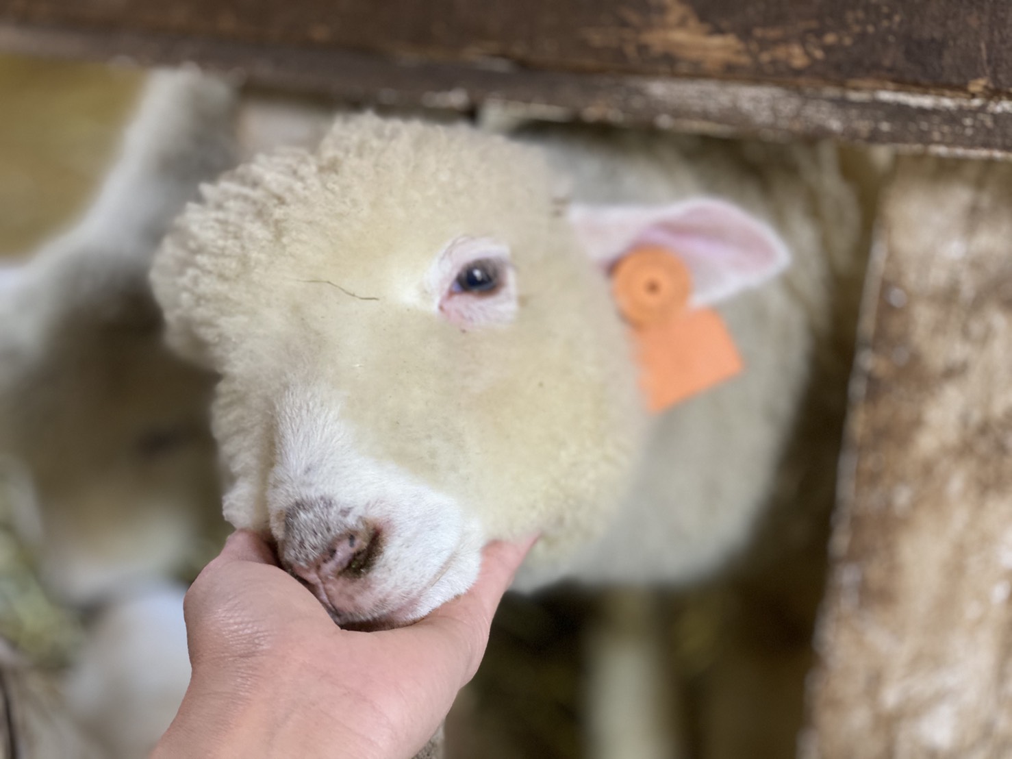 スソソ とさわらせてくれる子羊。