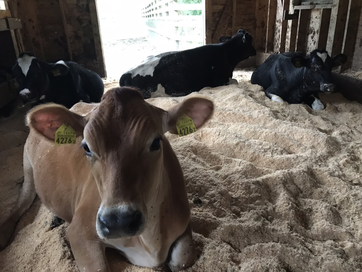 子牛たちが、掃除後のお部屋で実に気持ちよさそう・・・