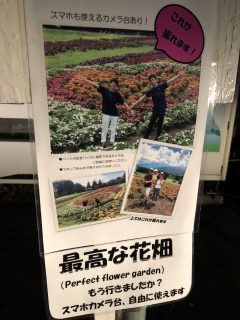 ハート花畑をバックに撮影できる場所にある階段型カメラ台。