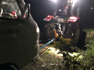 と思いながら、トラクターで引っ張り出される車を撮る。