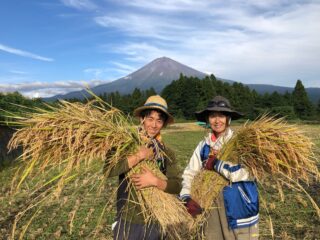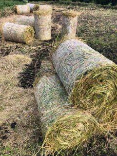 無農薬の地元のお米農家、白糸ファームさんへ稲わらを(飼料用に)頂きに行く。