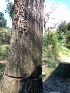 となり(写真右)の木もいつか倒さねばならないようだが、
