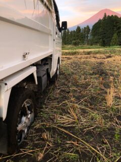 「いままで、農家さんに行って【ここは車で入ってもハマらない、大丈夫な畑だから】と言われて入ったら、予想どおりハマったことが2回あるよ。その経験がある私が言う【4駆の車は、この畑はハマらないから大丈夫】」。