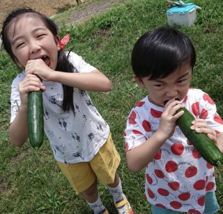 「キュウリもぎたべ!」