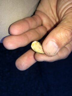 帽子を外してみると、どんぐりに黒い傷が一つ。
