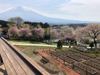 シダレザクラと富士山のコントラストが美しい。