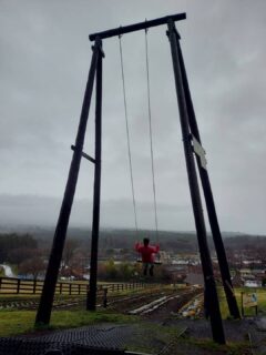 「小雨ぐらいならブランコも楽しまなきゃネ」