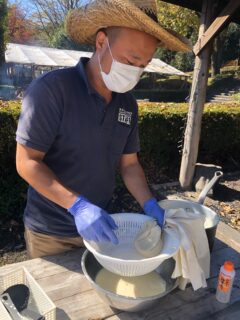 今週末は、まかいの牧場まきば農園で大豆の畑を持った方々と一緒に「豆腐作り」に挑戦!