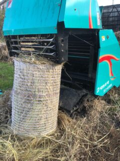 午後、なごみ農園さんの畑に到着し、藁をロールにする作業を開始して30分後…