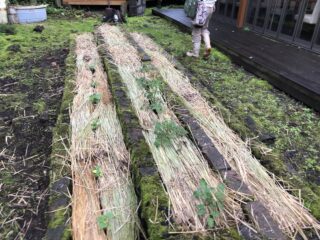 レストランの庭・野菜畑に牧場から分けてもらったワラを敷いていましたw