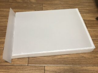 中が見える、「チラシを自由にお取りください」の手作りBOX。