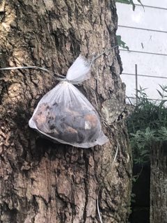 おととい仕掛けたバナナトラップに、昨日もオオムラサキが来ておりましたw
