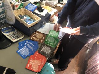 ↑そんな風に集まったカードを、再び色ごとに分けているところ。