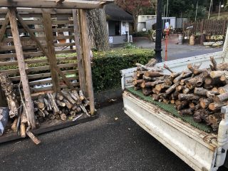 場内で木を倒すことが多分にあり、その材は、マキになったり、シイタケのほだ木になったりして有効に活用されます。