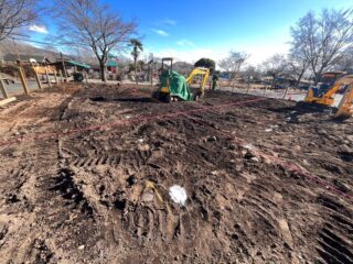 外側の杭が大体たて終わり、今日から中の柱を建てる。
