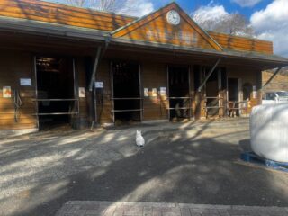 大切な馬たちが、ちゃんとお食事できているかどうかをチェック中のムタ氏を遠撮。