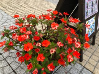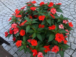 入口のサンパチェンスが… どう見ても「肥料切れ」の様相。