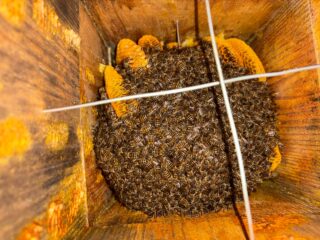 4段中、上から3段まで巣が出来ており、ハチミツ(冬の食料)も冬越し分はありそうな感じ。(採ってない)