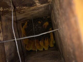 一番上の1段しか巣が無いし、ハチの数も少ない様子。