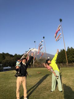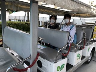 食の体験やトランポリンでも、「遊ぶ前(並ぶ前)に消毒してね」という
