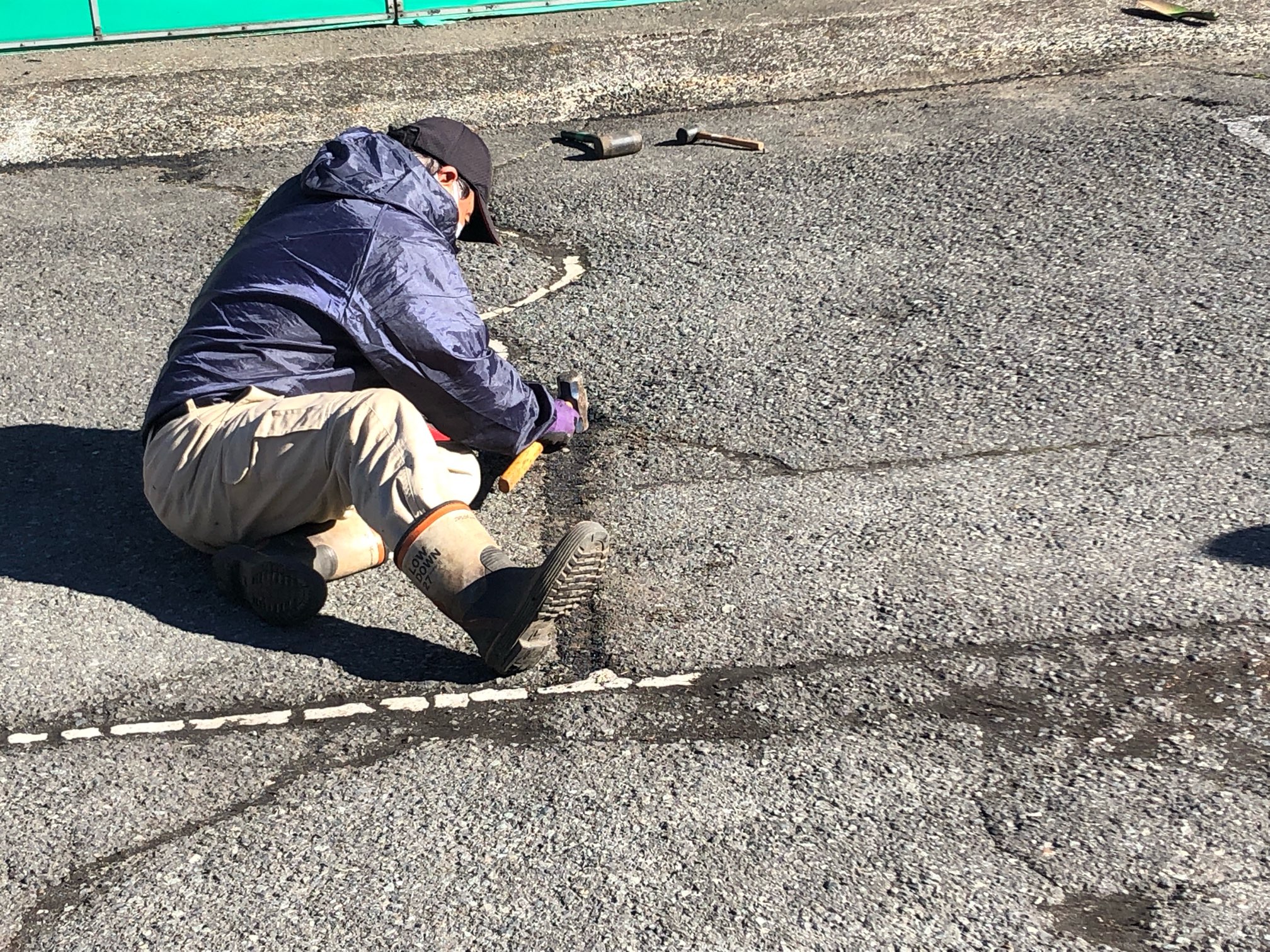 アスファルトの穴やヒビに入れて、トントン圧力をかけると・・・