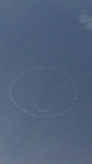 「まもなくアクロバティックパイロットの、コロナ渦でのみんなを応援するフライトが真上に来そうです!」と情報が入り!