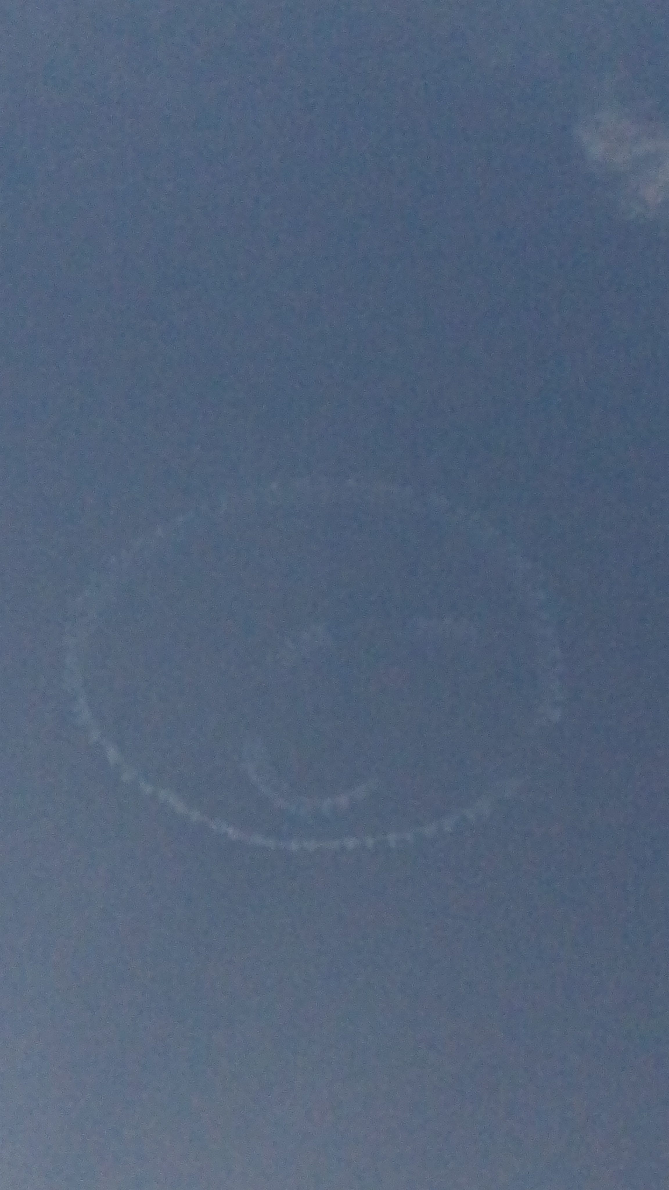 12:35分、音は聞こえていてもぜんぜん見えない大きさの飛行機が、見事に真上に飛行機雲(正確な呼称ではない)で空に絵が描かれてゆく!!