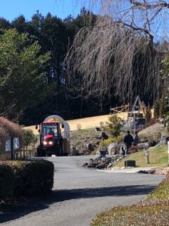 「上のトラクターの写真の奥に、大工さんが新設しているテラス建設中現場がチラッと見えてますね。」