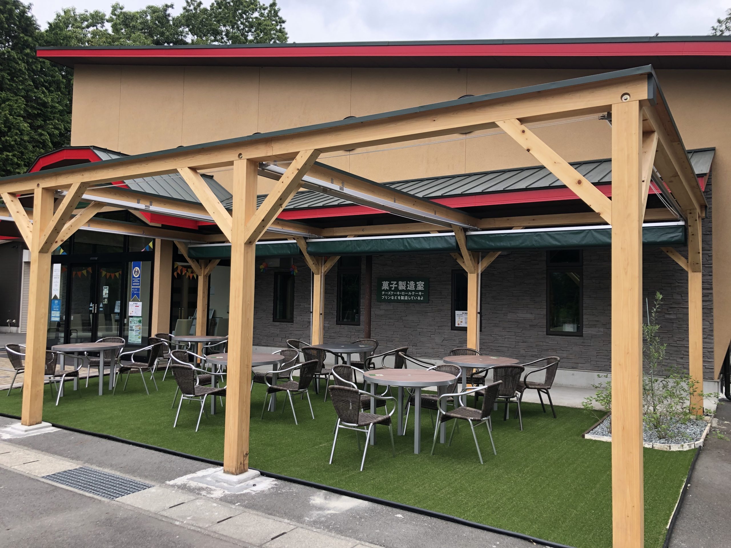 factory前に、「おしゃれな日よけとゆったりできる場所」が出来ています🎵