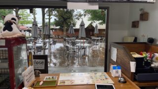 昨日は雨だった中で、座席のPOPをきれいにはがす。