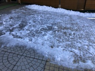 場内は探さないと雪がないような中で、入口のところだけは積もったままだったので、かいてくれました。