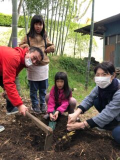 「みんなで力をあわせてタケノコ掘り☆彡」