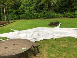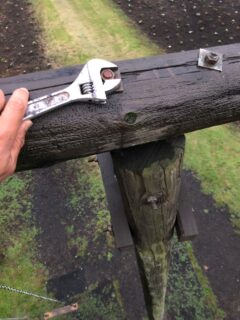 その柱は、場内の木を切って調達~。(左はじの白い棒)