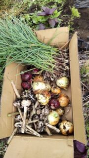 マナさん達は、自分で植えた「ニンニク」「玉ねぎ」「赤タマネギ」「ラッキョウ」を