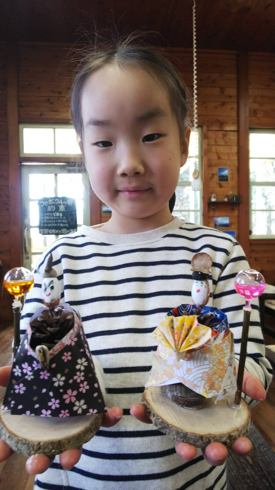 「新たな体験スタート!」ひな人形づくり体験が始まりまして、その第1号のユキさんの作品!